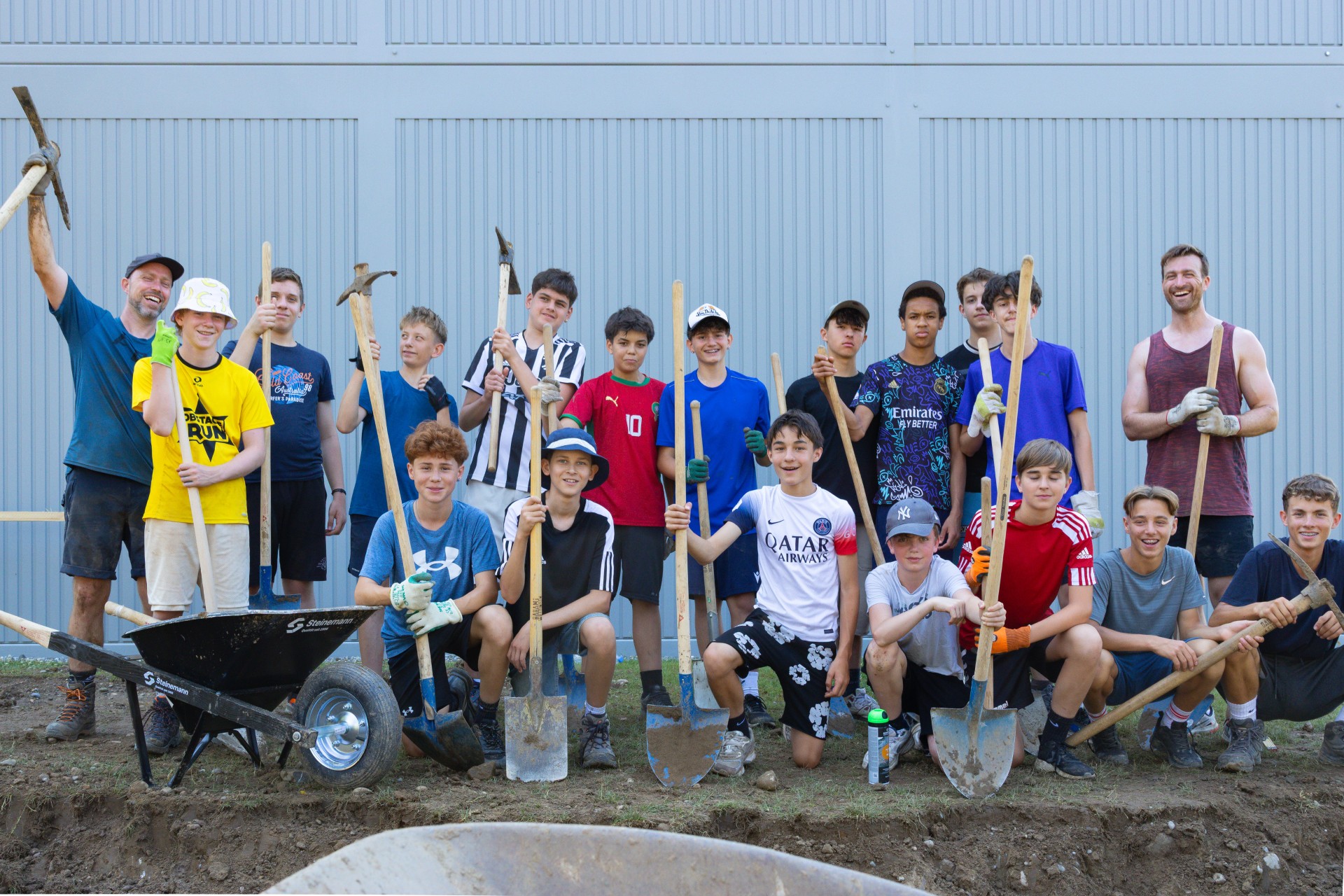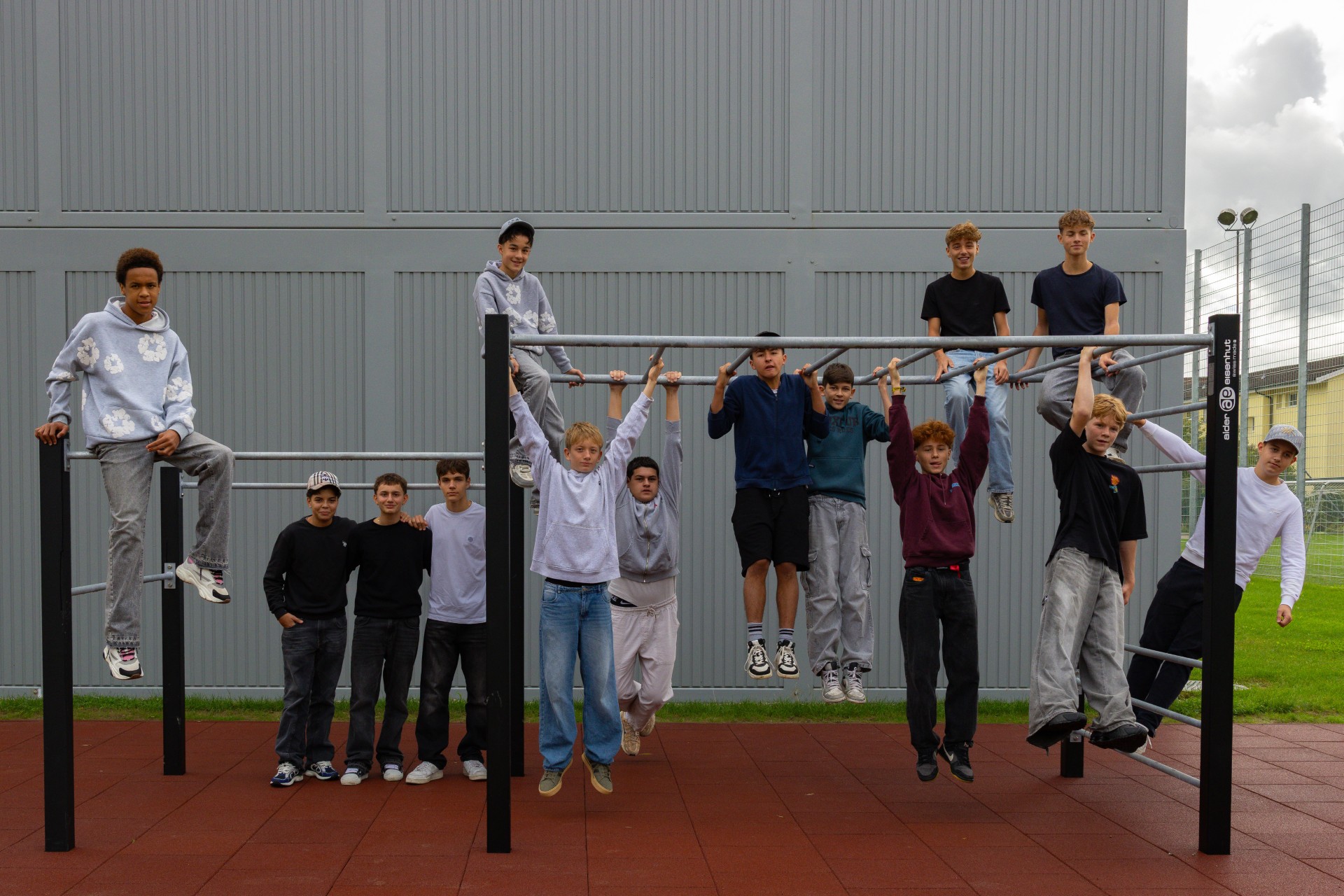 25.09.2025Im Rahmen der diesjährigen Projektwoche packten unsere Schüler kräftig an. Mit Schaufel, Schubkarre und viel Ausdauer verwandelten sie eine freie Fläche auf dem Schulgelände in einen modernen Street Workout Park mit Monkey Bars. Nach Tagen voller Einsatz, harter körperlicher Arbeit und Teamgeist kann sich das Ergebnis sehen lassen. Ein echter Gewinn für unsere Schule.